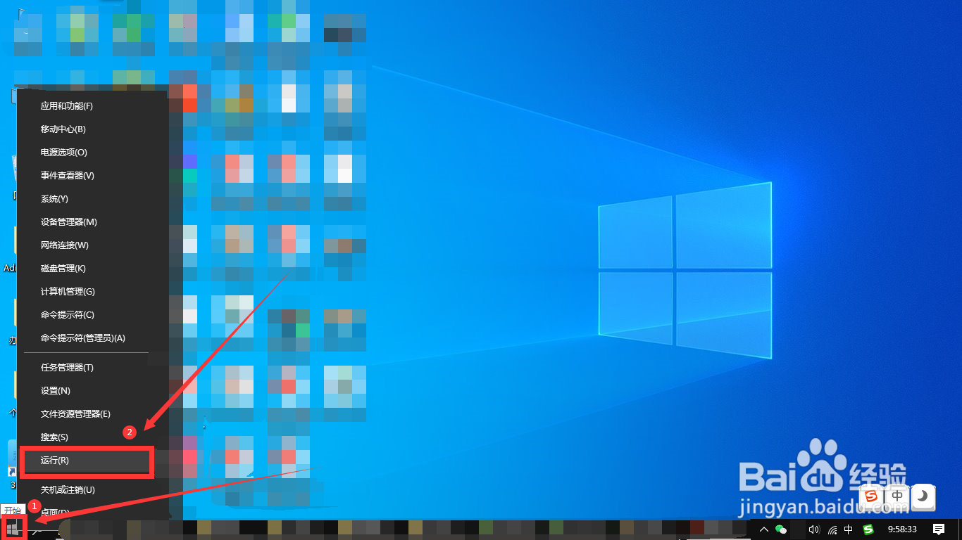 右键点击电脑桌面左下角的【开始】,在弹出的菜单中点击【运行】。