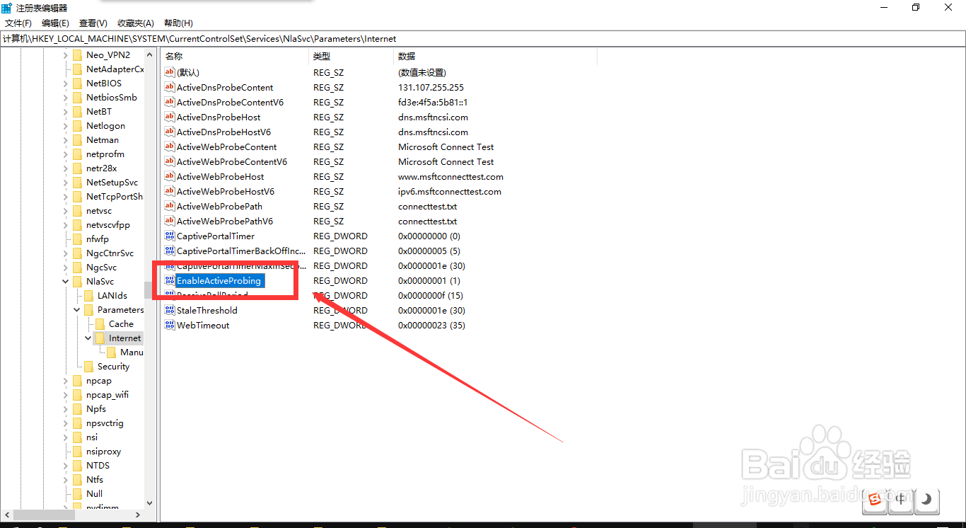 4/5双击右侧【EnableActiveProbing】这个数值数据。