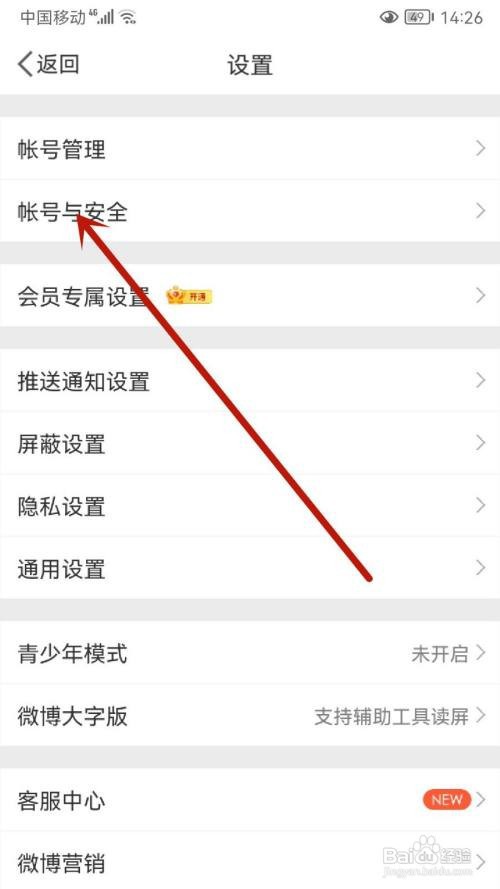 3/5打开设置 的菜单界面点击帐号与安全选项