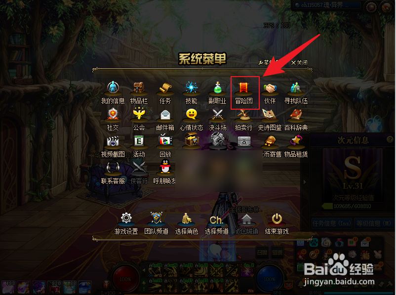 在游戏中,打开【系统菜单】,点击【冒险团】,如图所示: