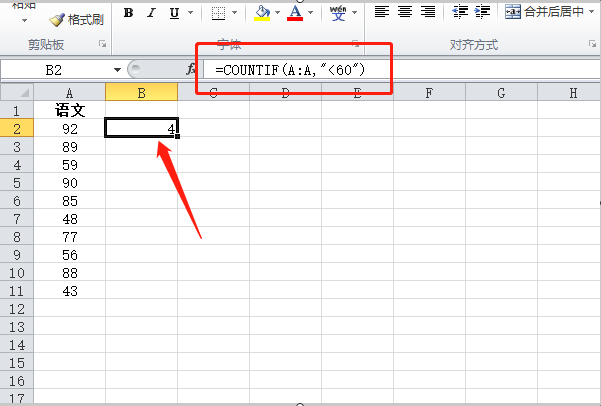 excel统计不及格人数