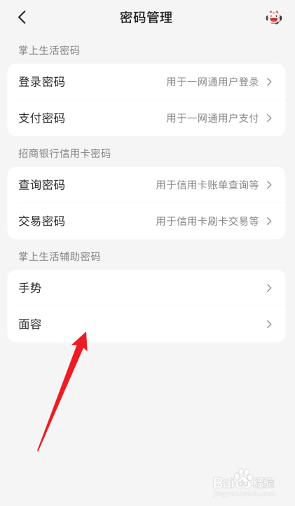 3/4进入密码管理界面,点击【面容】