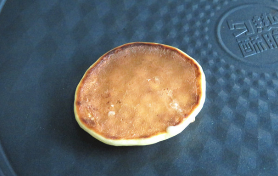第九步:等看见上面的面糊冒小泡泡了,就可以翻面了,翻面后再烙几秒钟就好了。