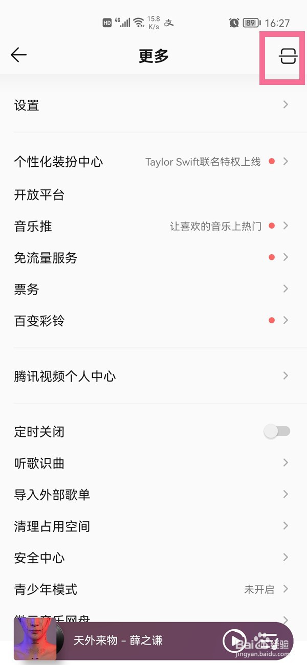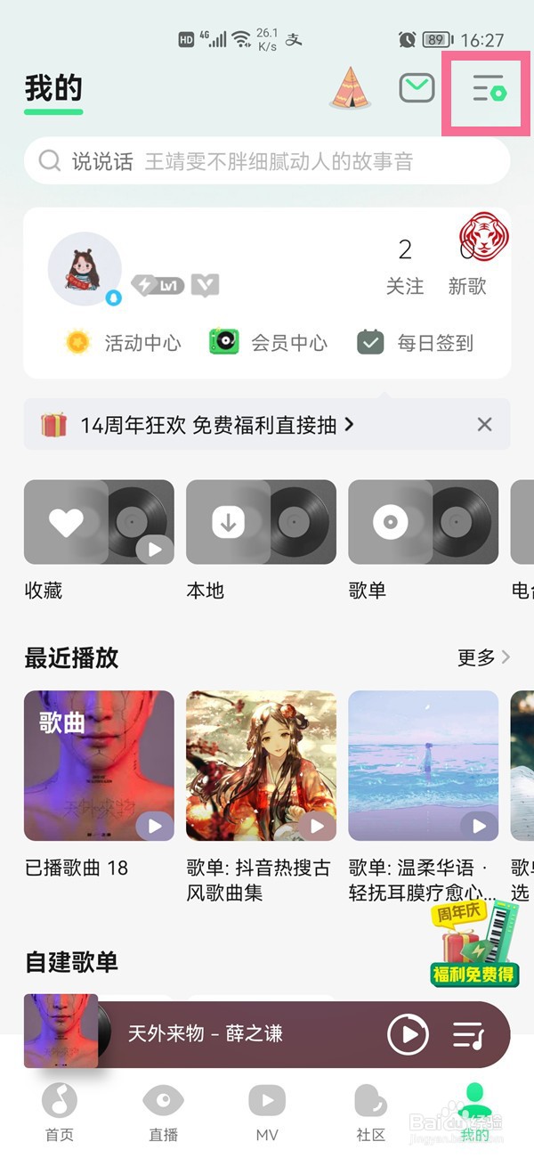 总结:1/11、开启手机QQ音乐,找到“我的”界面确认右上角三横设置图标。