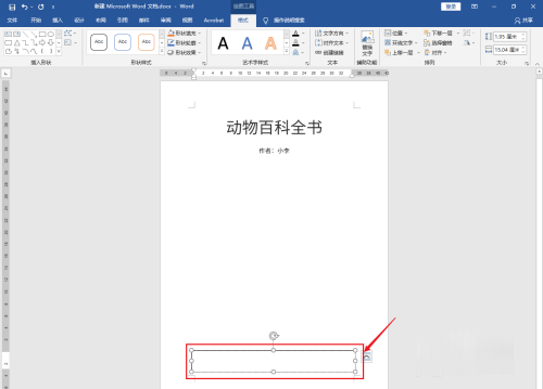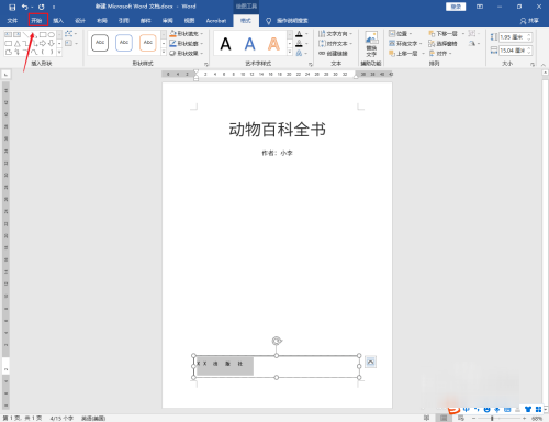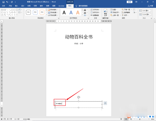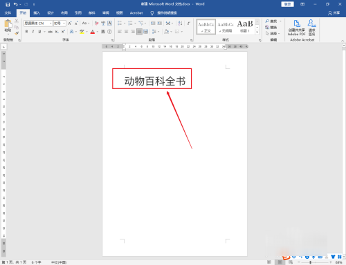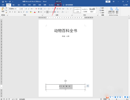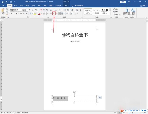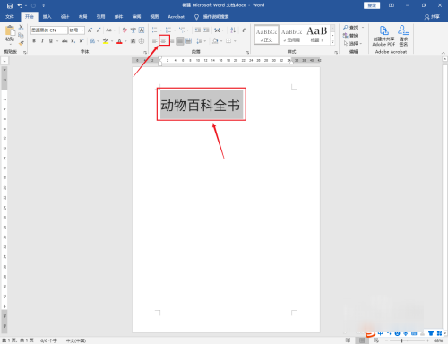选中书名:动物百科全书文字,点击上面的【居中】图标。