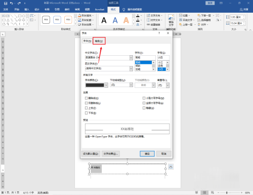 弹出字体框,点击【高级】标签。