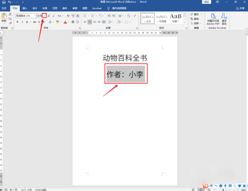 选中作者:小李文字,点击字号栏的【向下】图标。