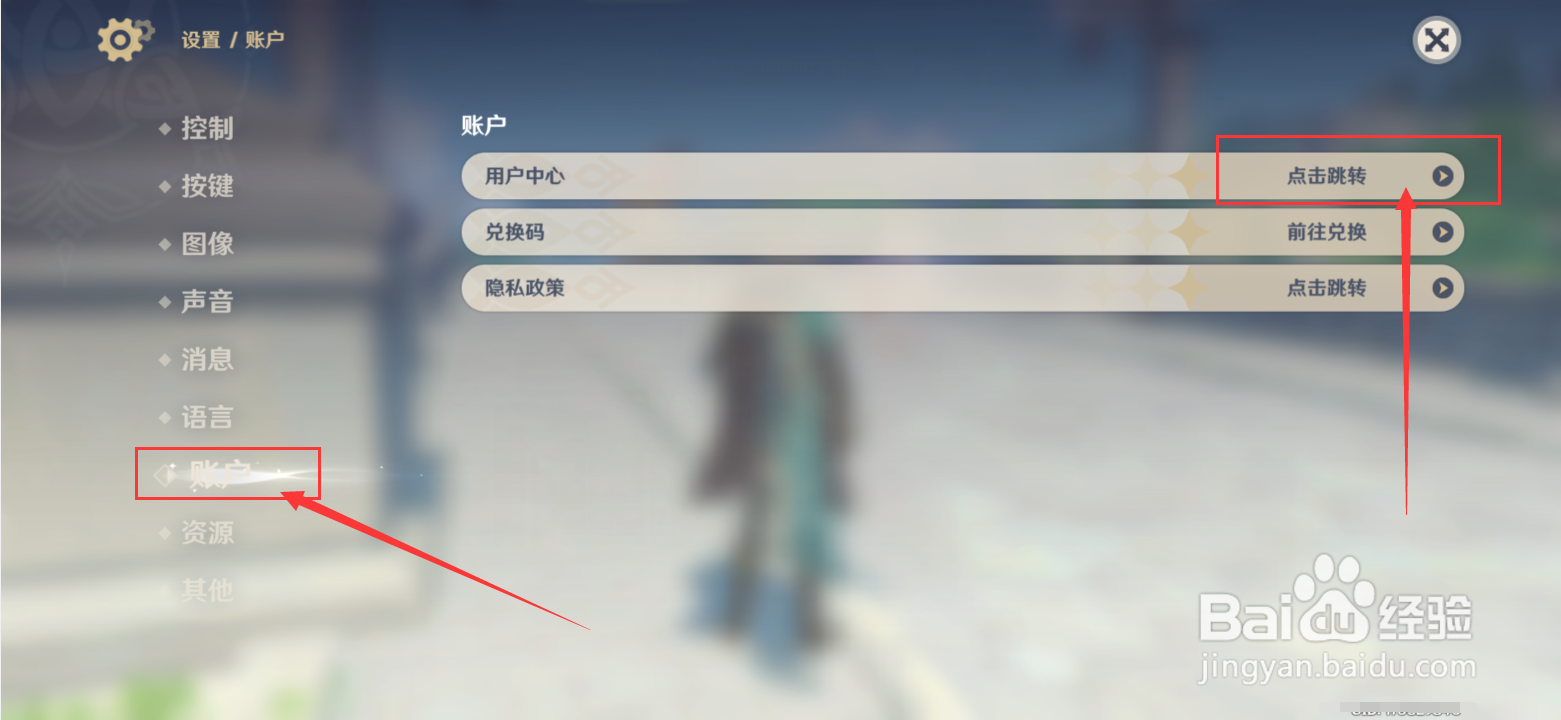 2/3选中左侧的“账户”,继续点击右侧的“用户中心”。