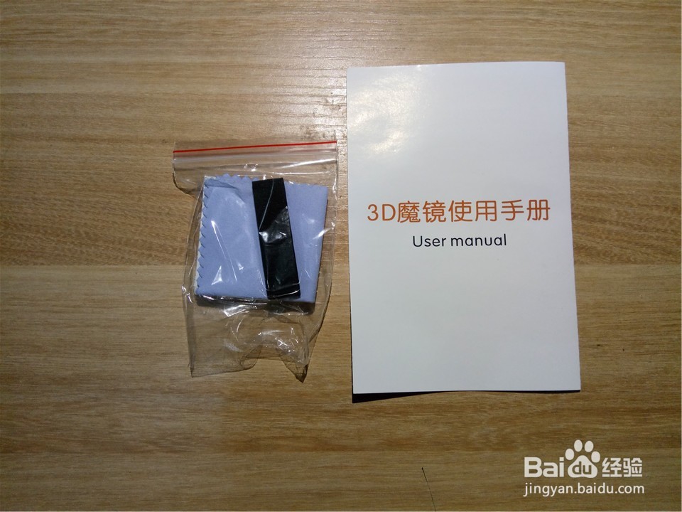 打开包装盒,首先我们取出所有的配件,所有的配件就只有一块用来擦眼镜的镜头布和一个使用说明书。