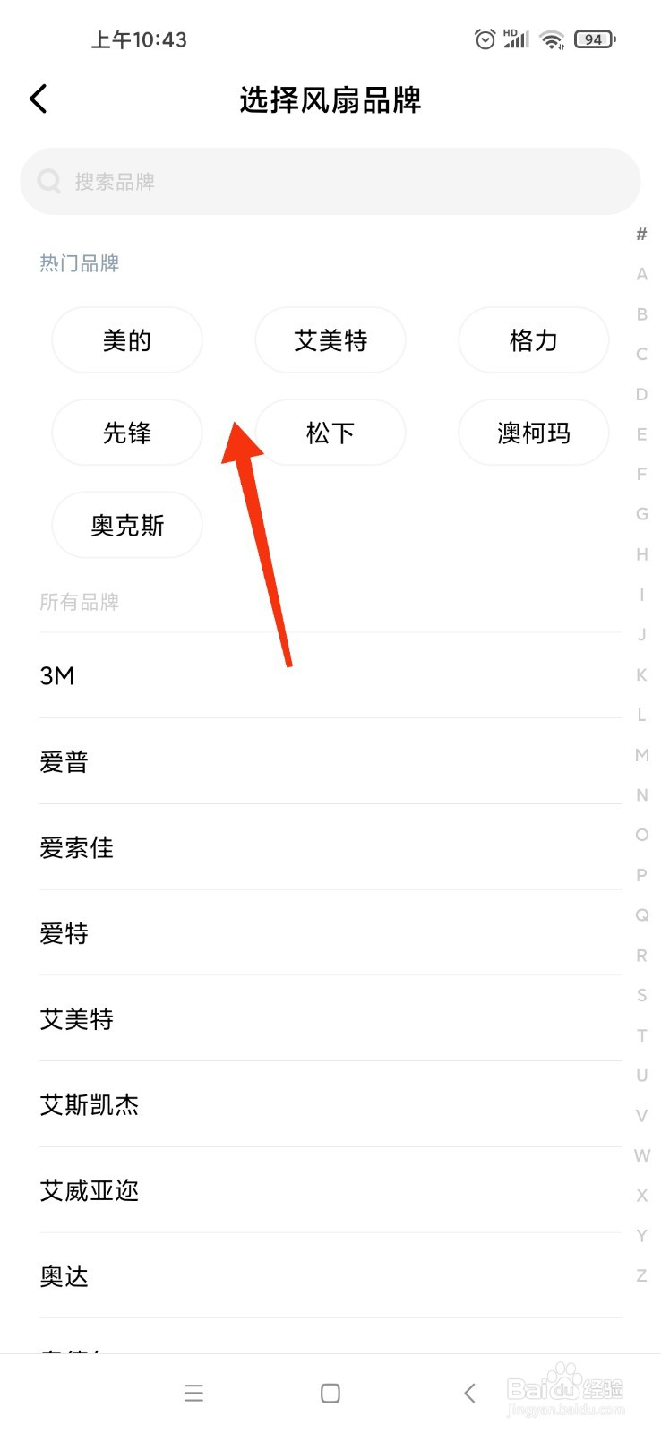 点击选择风扇品牌,如下图,看到添加风扇遥控器