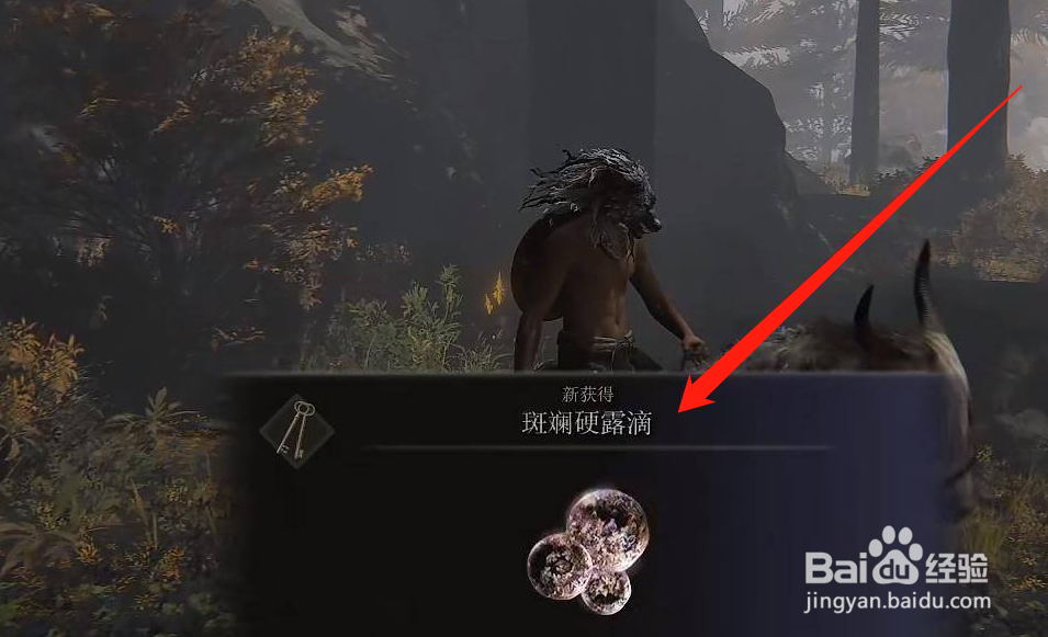 最后,我们击杀巨怪后,就可以得到斑斓硬露滴了