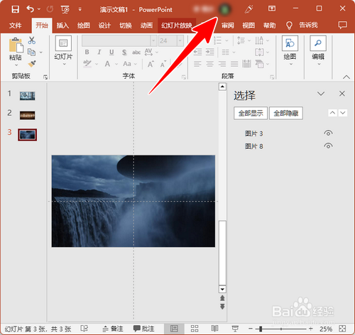 PPT完成后,点击PowerPoint标题栏上的个人微软账号图标。