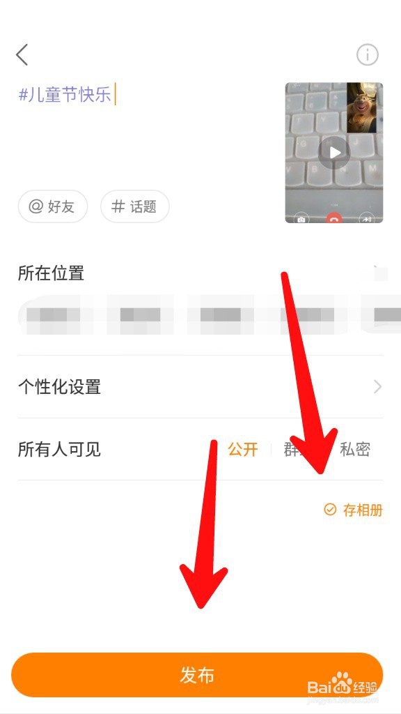 写上自己想要说的内容然后把“保存到相册”勾选一下,点击“发布”,打开 抖音上传刚才制作的视频就可以了