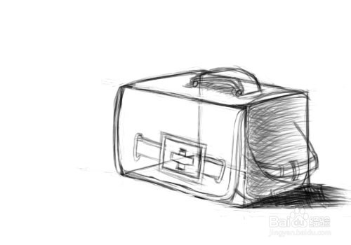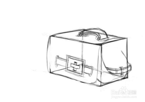 细化方形包的边缘轮廓,离视点近的底部轮廓线要恰当加深,包的底部转折处要圆滑