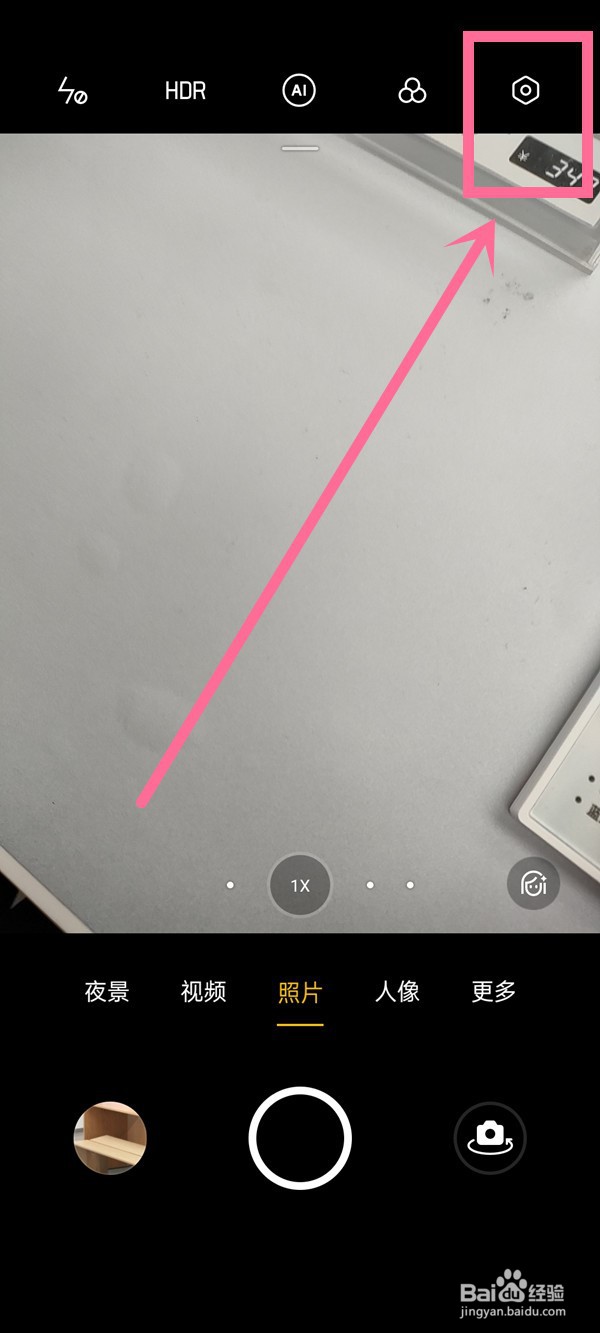 点击手机桌面上的【相机】图标,点击右上角的设置图标。