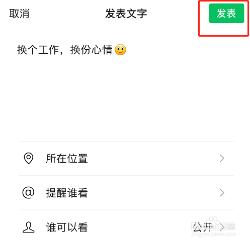 换工作了,怎么发朋友圈呢!小编教你怎么操作。