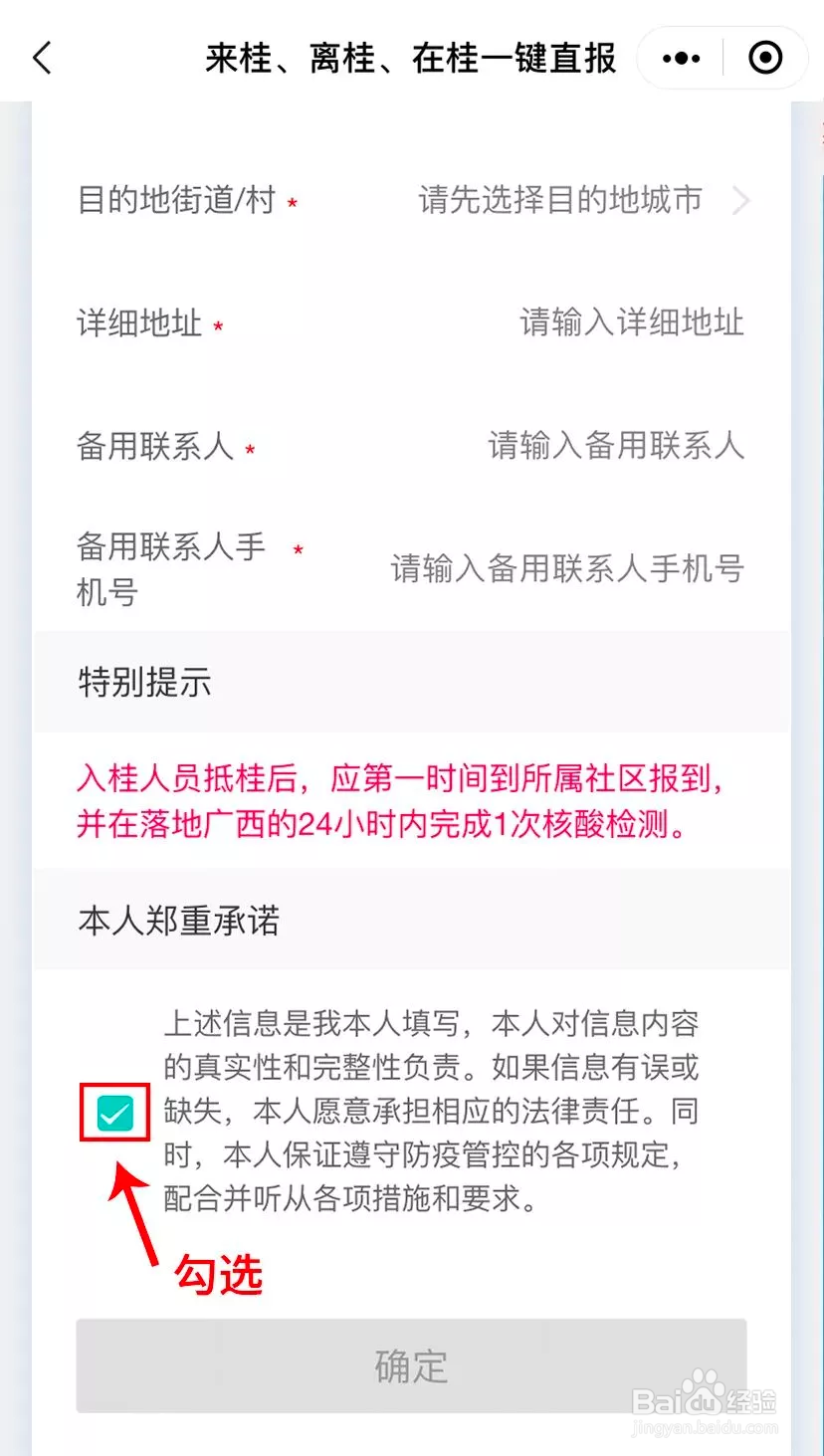 第三步,勾选本人承诺书,点击页面下方的【确定】,即可完成报备