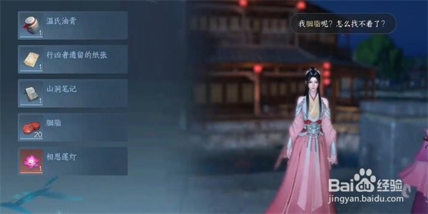 然后我们就得NPC的胭脂丢了,我们就把获取到的胭脂出示给NPC,继续进行对话即可。