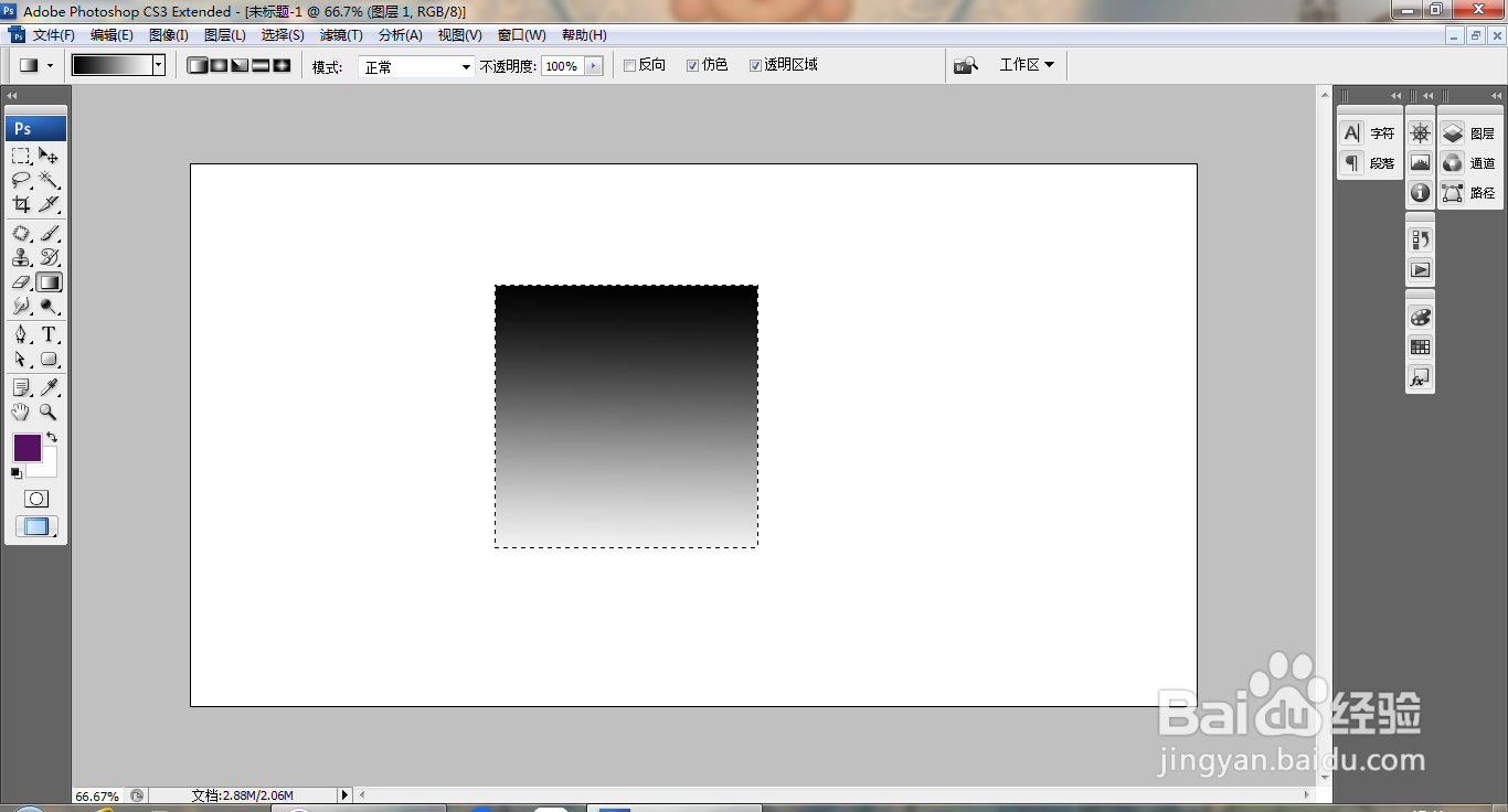 选择矩形选区工具,绘制矩形选区,执行渐变颜色填充,如图
