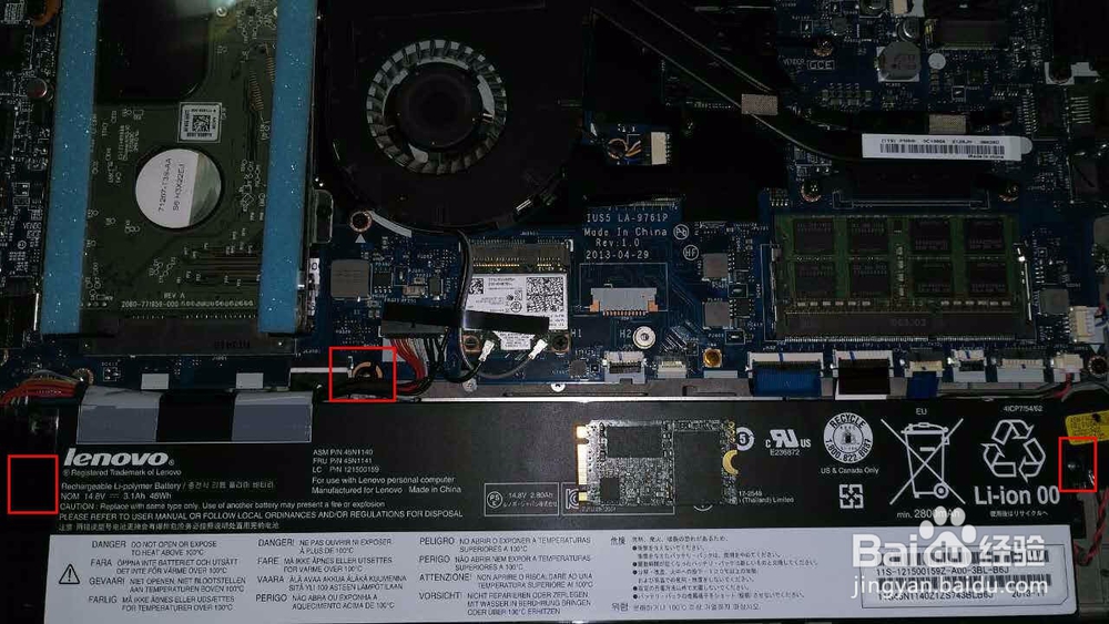 拧掉螺丝后,掀起电池,我们在可以看到,我这台机器的电池下,有空间,但是没有安装别的硬件。有不太多的排线。