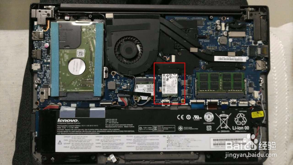 拆下来后盖后,最抢眼的是电池,这是一块14.8V,46Wh,min.2800Ah的锂电池。