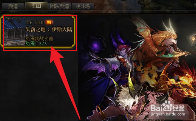 打开dnf,进入游戏界面,切换到军团副本频道。