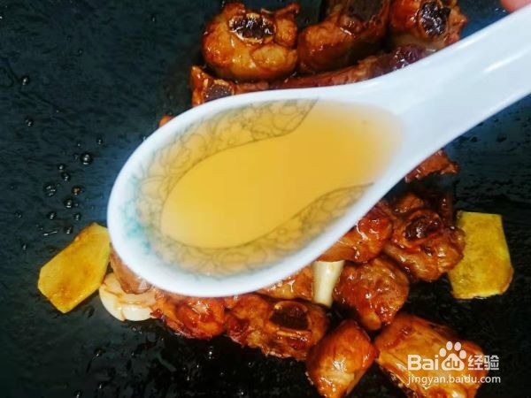 调入一汤匙料酒,老抽,生抽和米酒,提鲜增色。