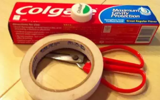 6,把做好的两个轱辘用胶带粘贴在牙膏盒底部,一定要粘牢固。