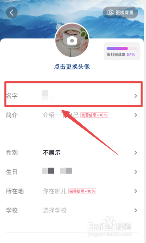 在编辑资料页面,点趣诉击“名字”。
