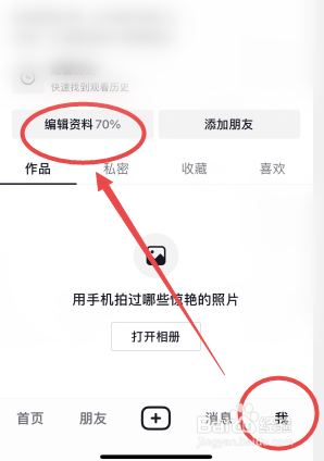 抖音点击右下角“我”,进入个人主页之沃仗后,点击“编辑资料”。