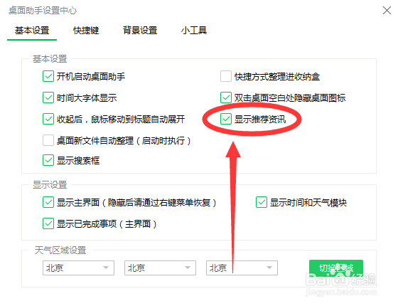 勾选方框中的选项,这样就可以在电脑桌面显示推荐资讯了。