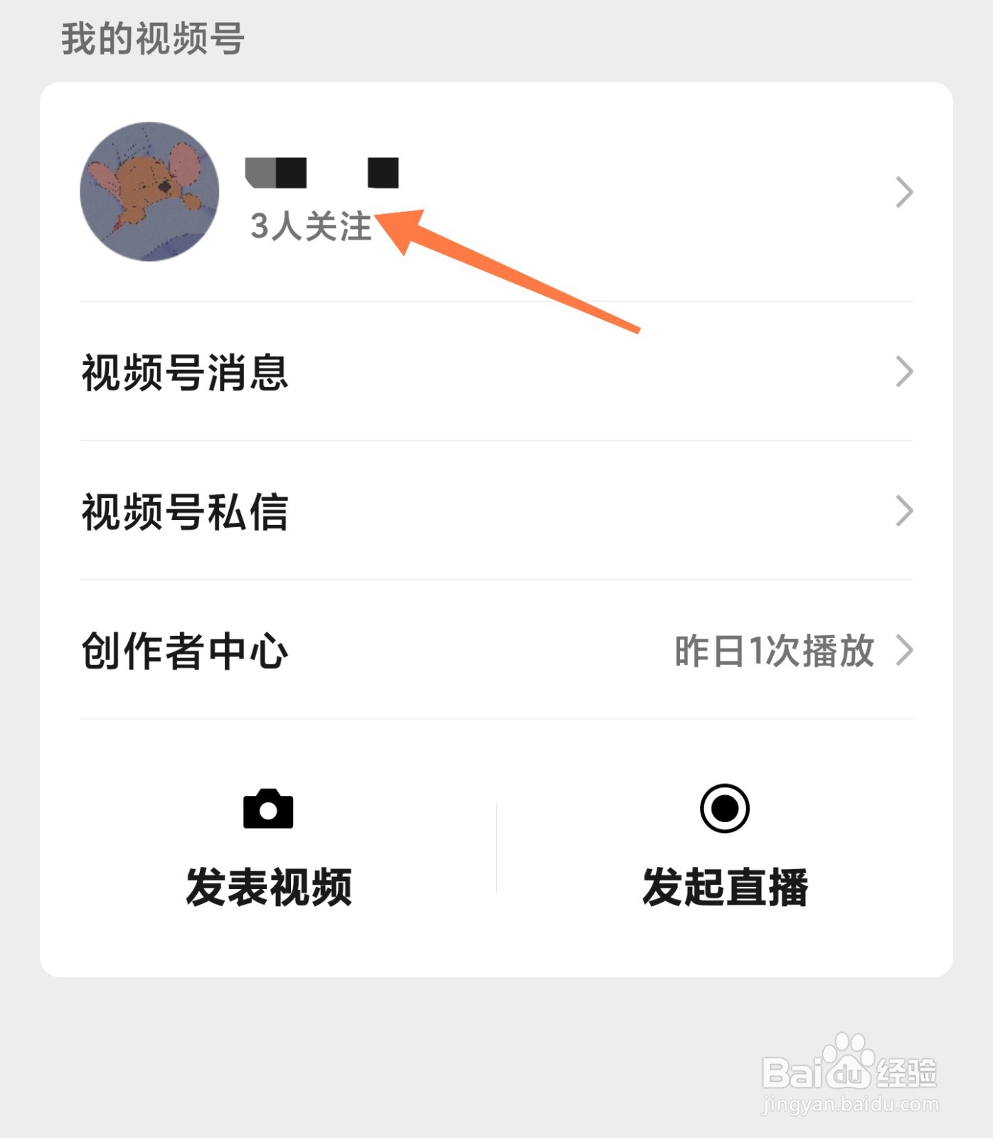 在叮棍页牺况面码丽昆中点击【视频号名字】。
