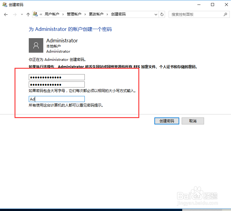 至此,账号已经启用,此时该账号是默认没有密码的,当我们重启系统后选择“administrator”账号登录即可进入。若要设置密码,步骤如下