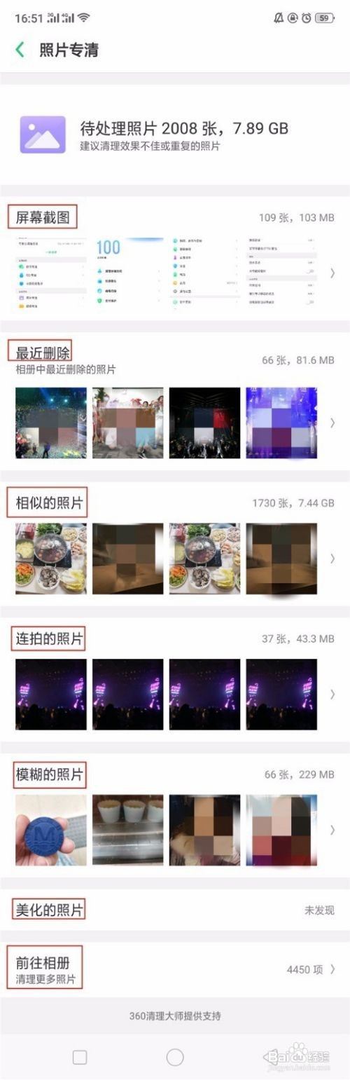可以通过桌面的 手机管家 — 清理存储空间 — 照片专清 ,选择被清理的照片类型,具体方法如下。