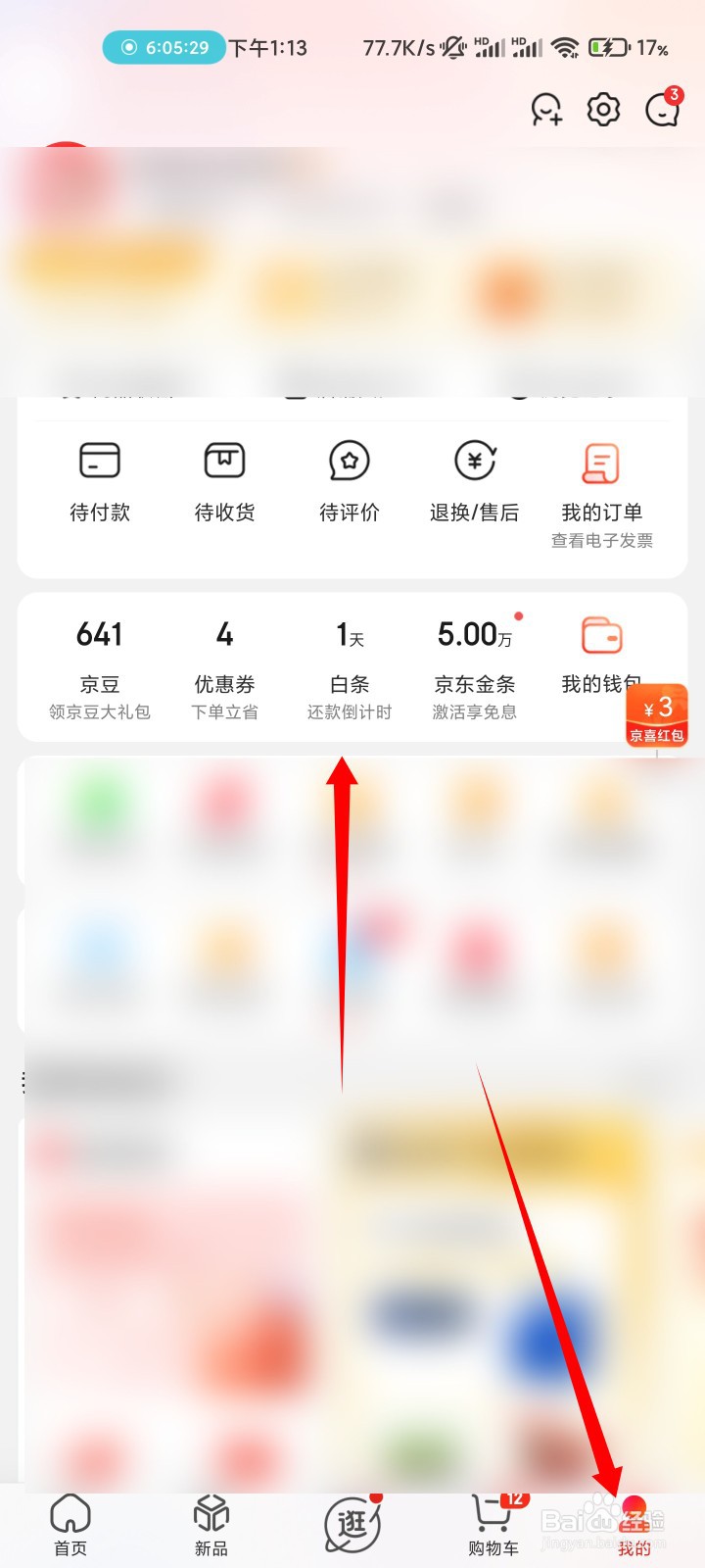 进入京东我的页面,点击京东白条的选项。