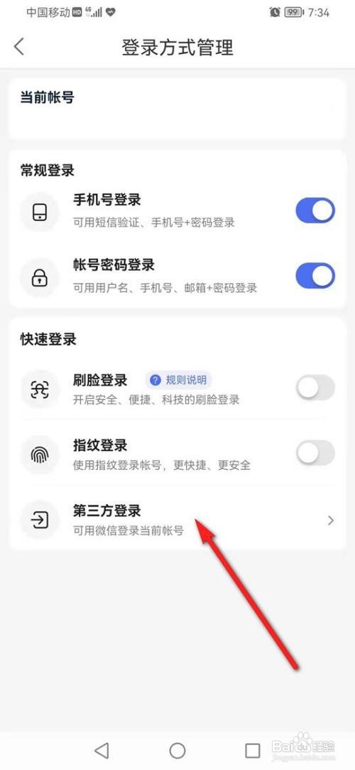 点击“第三方登录”。