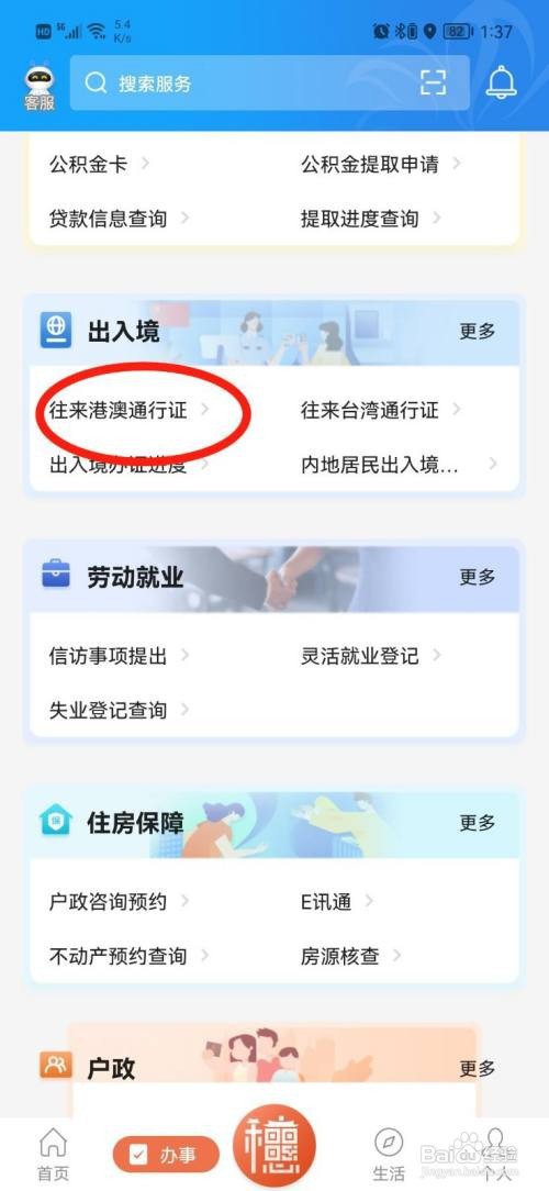 选中【往来港澳通行证】即可办理北京港澳通行证、
