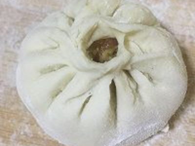 4、擀成圆形,放上馅料,包成包子。
