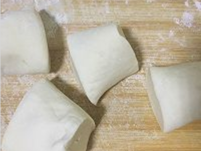3、发酵好的面团,揉成长条,然后分成几个均匀的小剂子。
