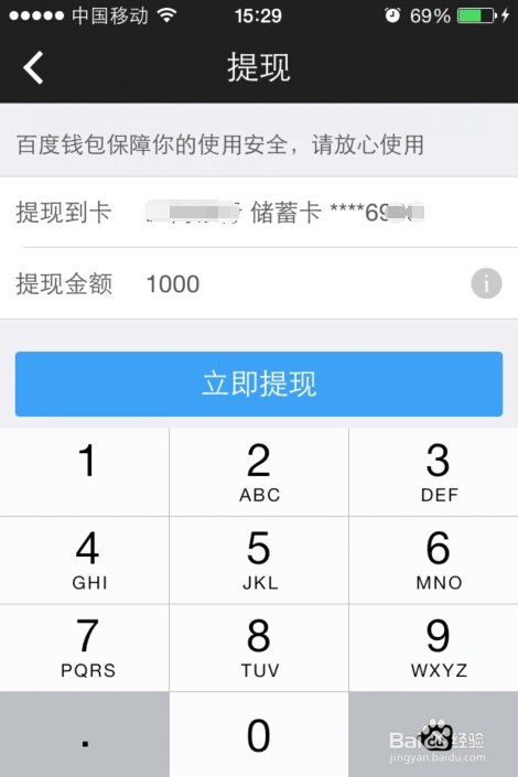 绑定完你所需的使用的产品后,例如想要把百度钱包的余额转账到支付宝或财付通,那我们进入百度钱包点击账户余额-提现到银行卡。
