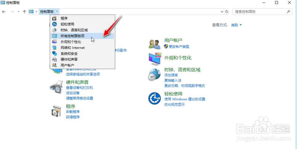 选择"所有控制面板项"。