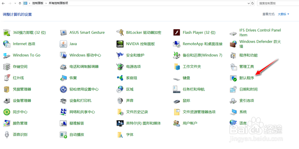 选择"默认程序"。