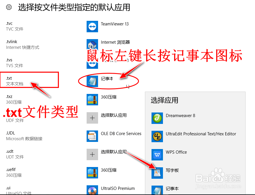 这样,默认的".txt"后缀格式文件类型就由默认的"记事本"更改成"写字板"应用程序打开了。