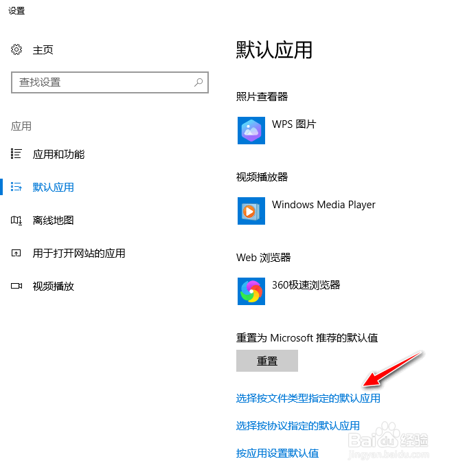 点击"选择按文件类型指定的默认应用"。