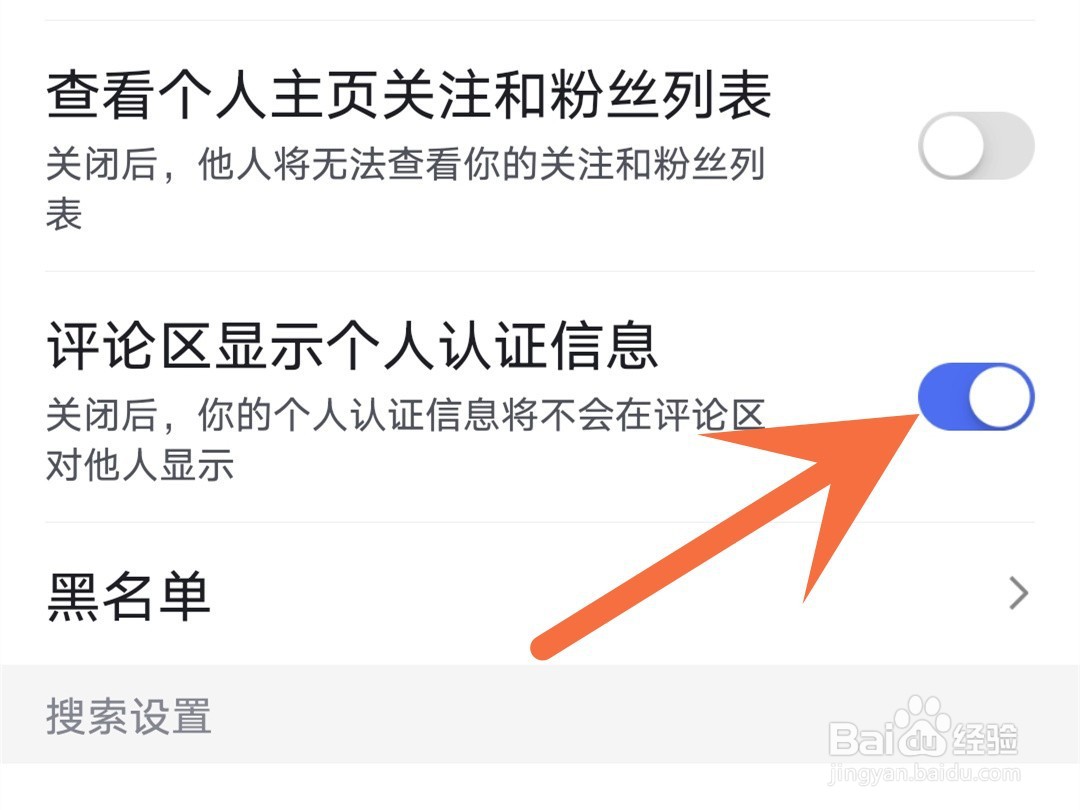 在隐私设置内,关闭【评论区显示个人认证信息】即可。