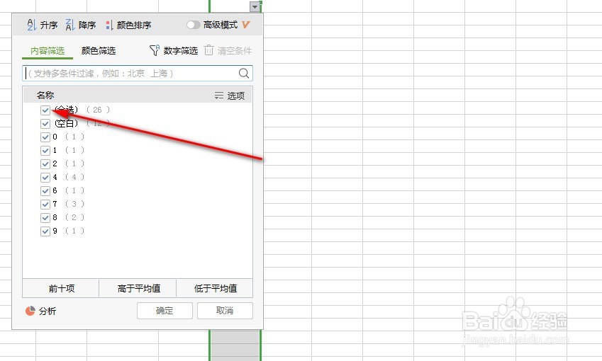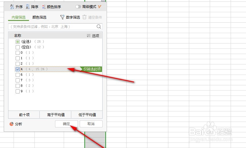 选择要筛选的选项,点击前方框框打钩,点击确定