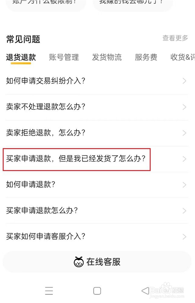 进入客服页面,点击买家申请退款,但我已经发货了怎么办。