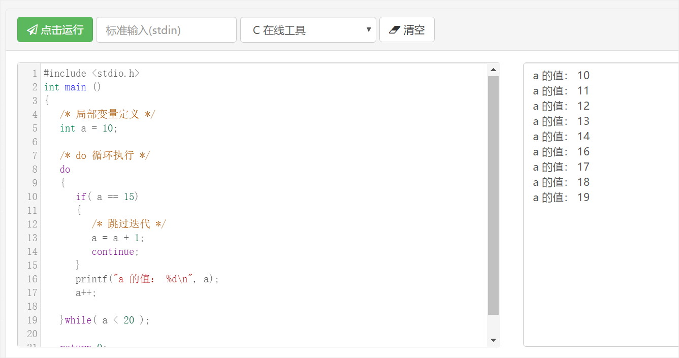 来源:网络收集 点击: 时间:2025-10-10continue语句一般形式为"continue;"