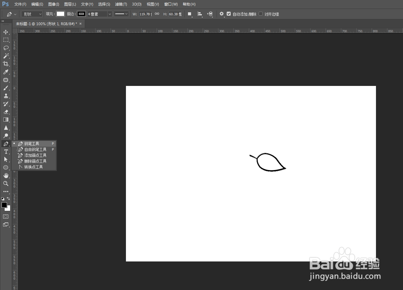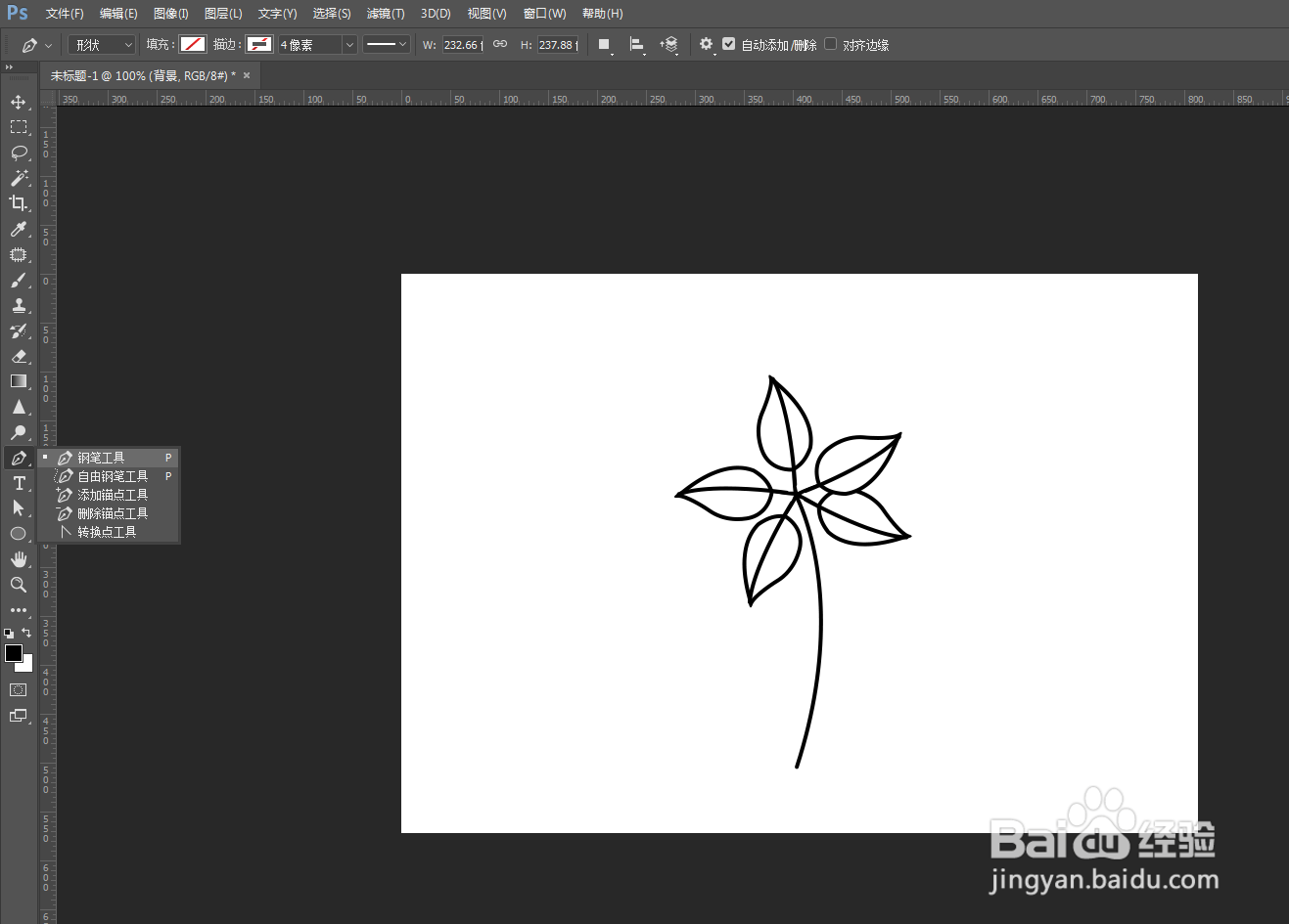 然后从工具栏找到“钢笔工具”随民民,快英菌捷键P,做出一个形状