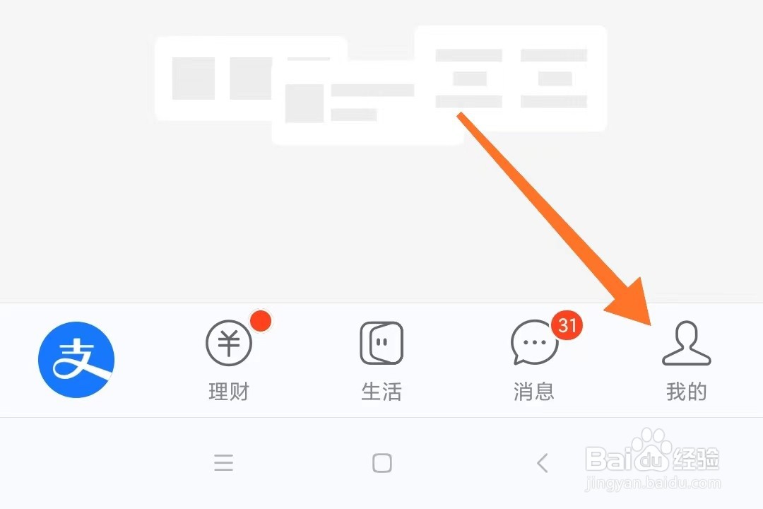 打开支付宝,进入以下界面,点击右下角的【我的】。